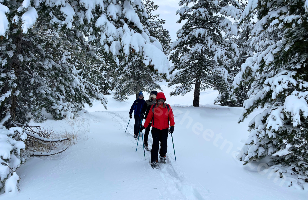 Schneeschuhe + Trekkingstöcke (10/13 € pro Person) können bei autorisierten Verleihstellen vor Ort ausgeliehen werden