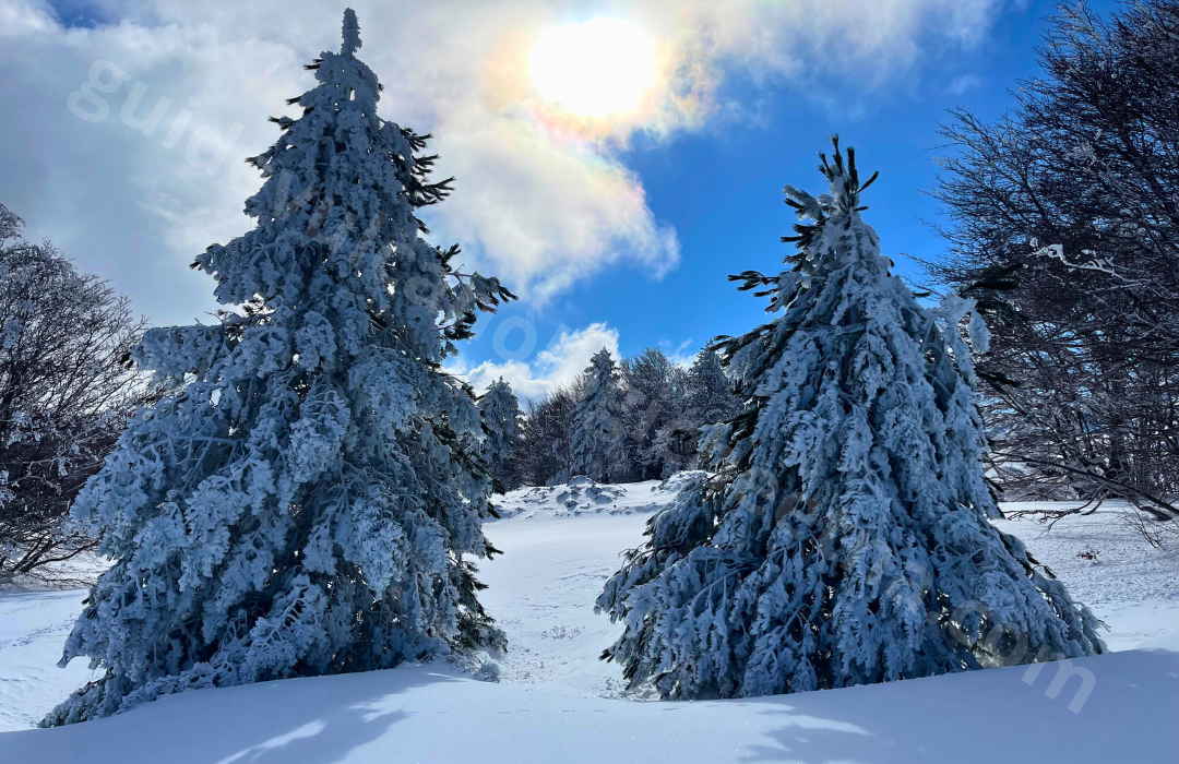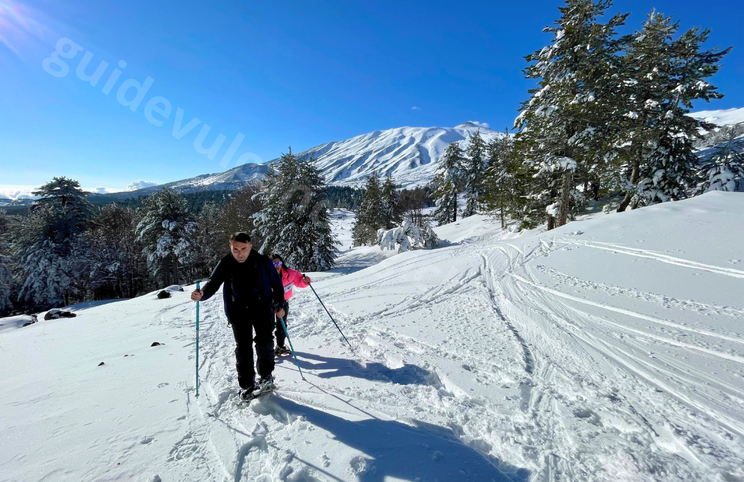 Nehmen Sie an unserer Winter-Schneeschuhwanderung in Piano Provenzana teil, wo der Zauber des Schnees die Landschaft in ein wahres Paradies verwandelt. Ausgestattet mit Schneeschuhen erkunden Sie Panoramawege und genießen atemberaubende Ausblicke auf den Ätna, eingetaucht in die Ruhe der Winternatur. Ein perfektes Erlebnis für alle, die Abenteuer und Entspannung suchen! Erleben Sie mit uns die Schönheit des Ätna im Winter!